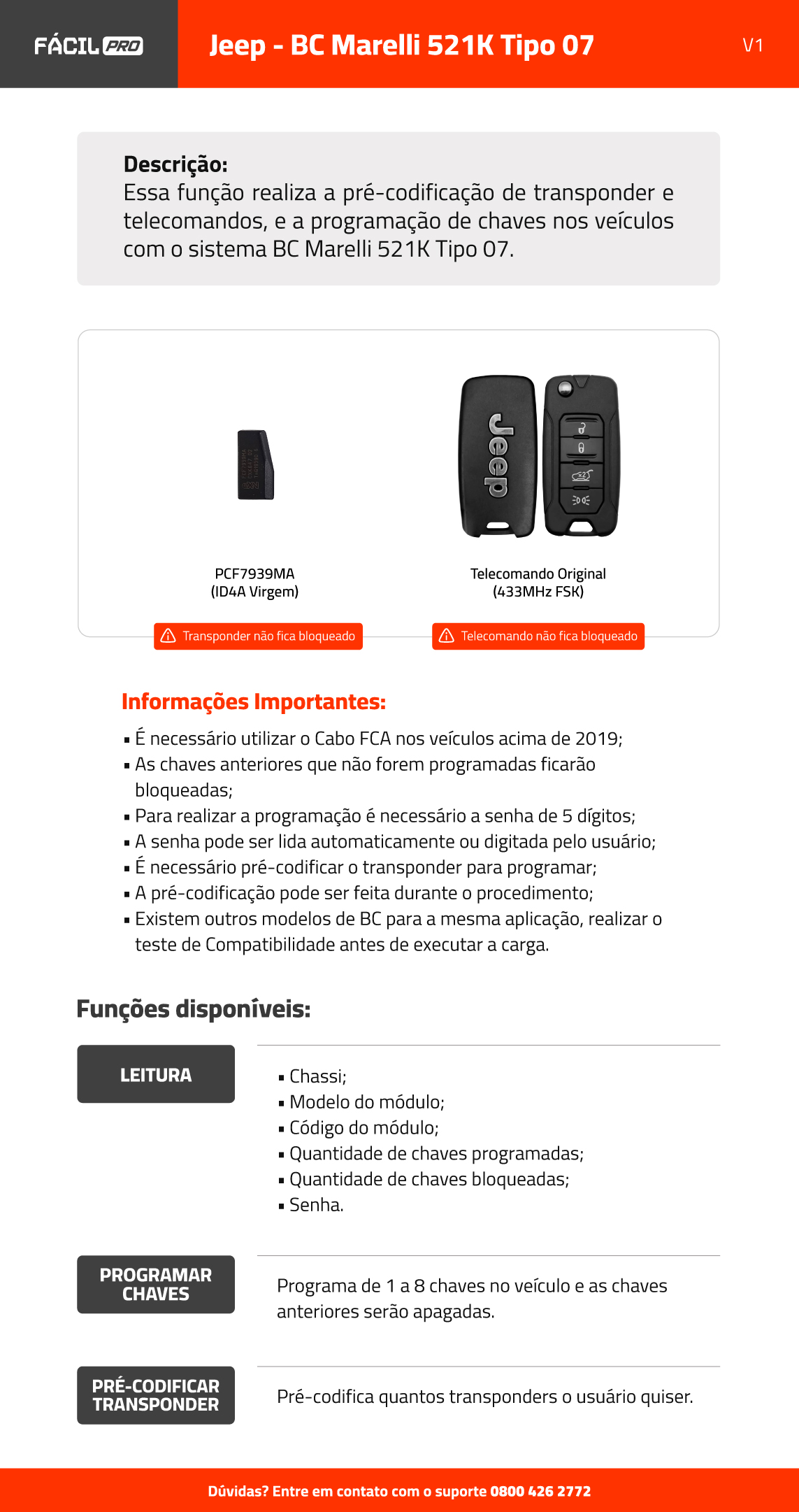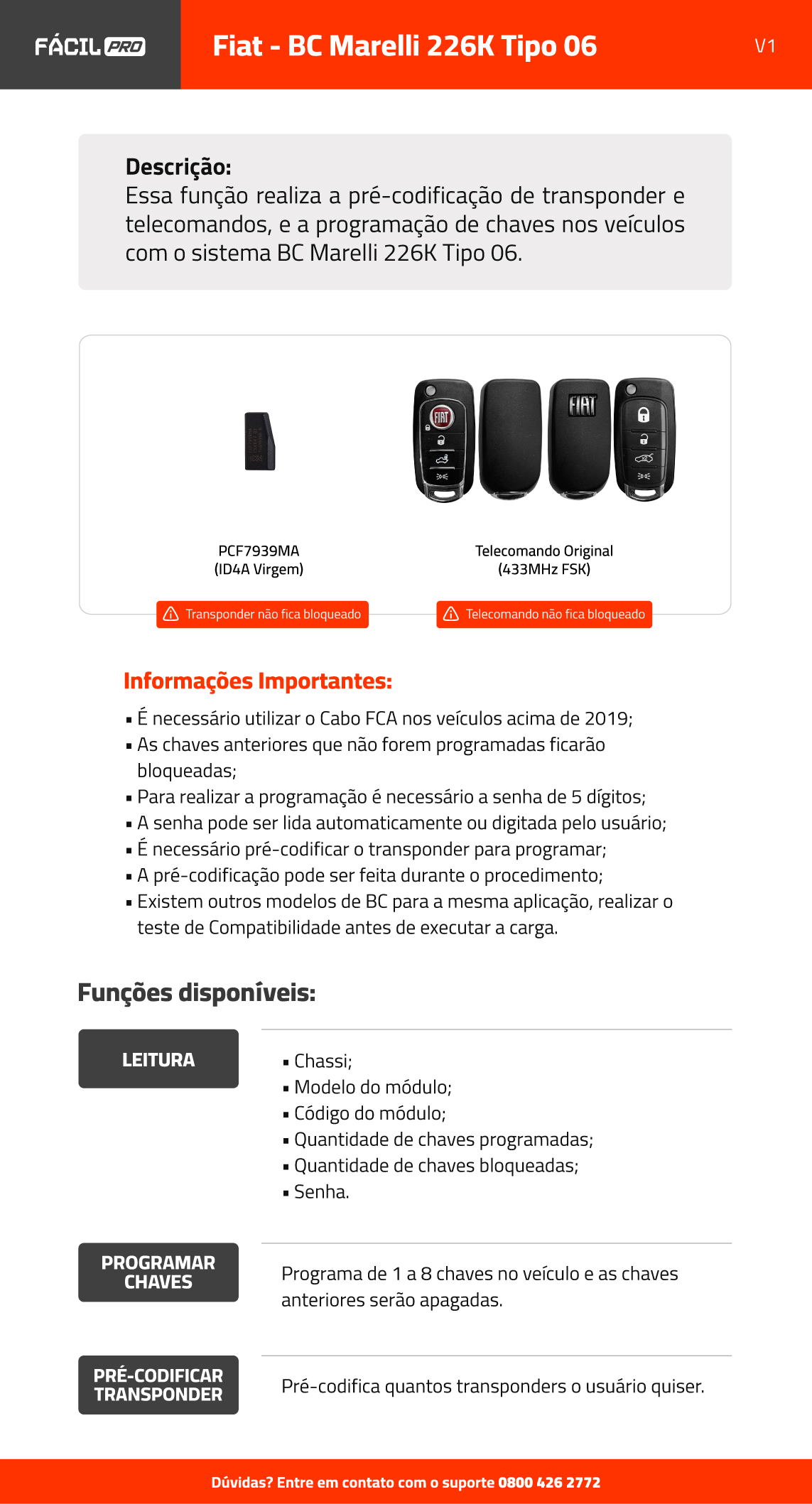 Necessário utilizar o cabo FCA para todos os procedimentos.