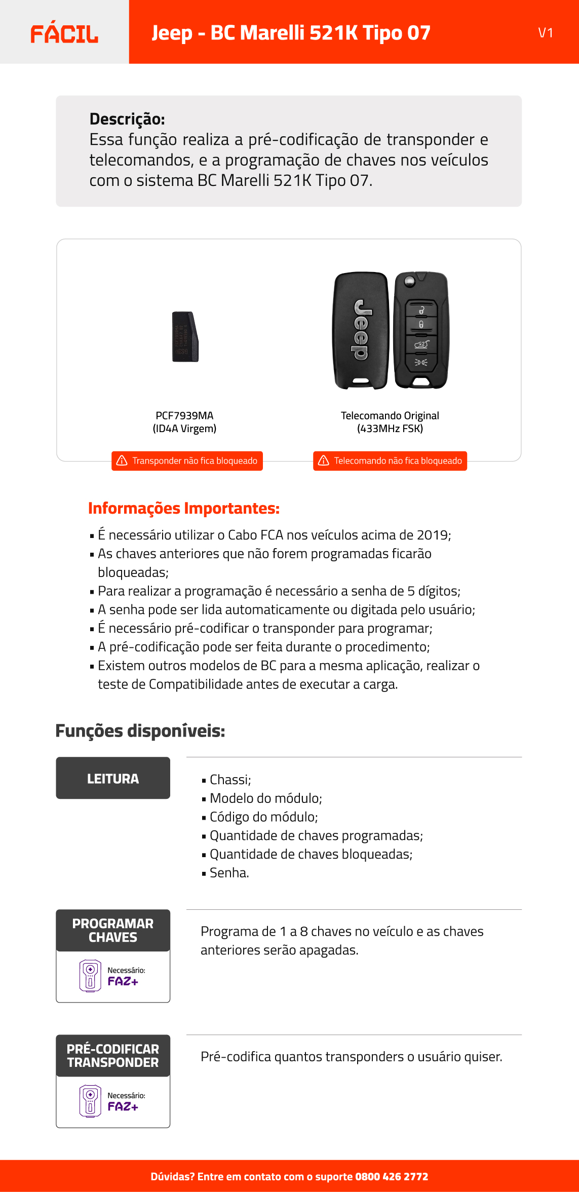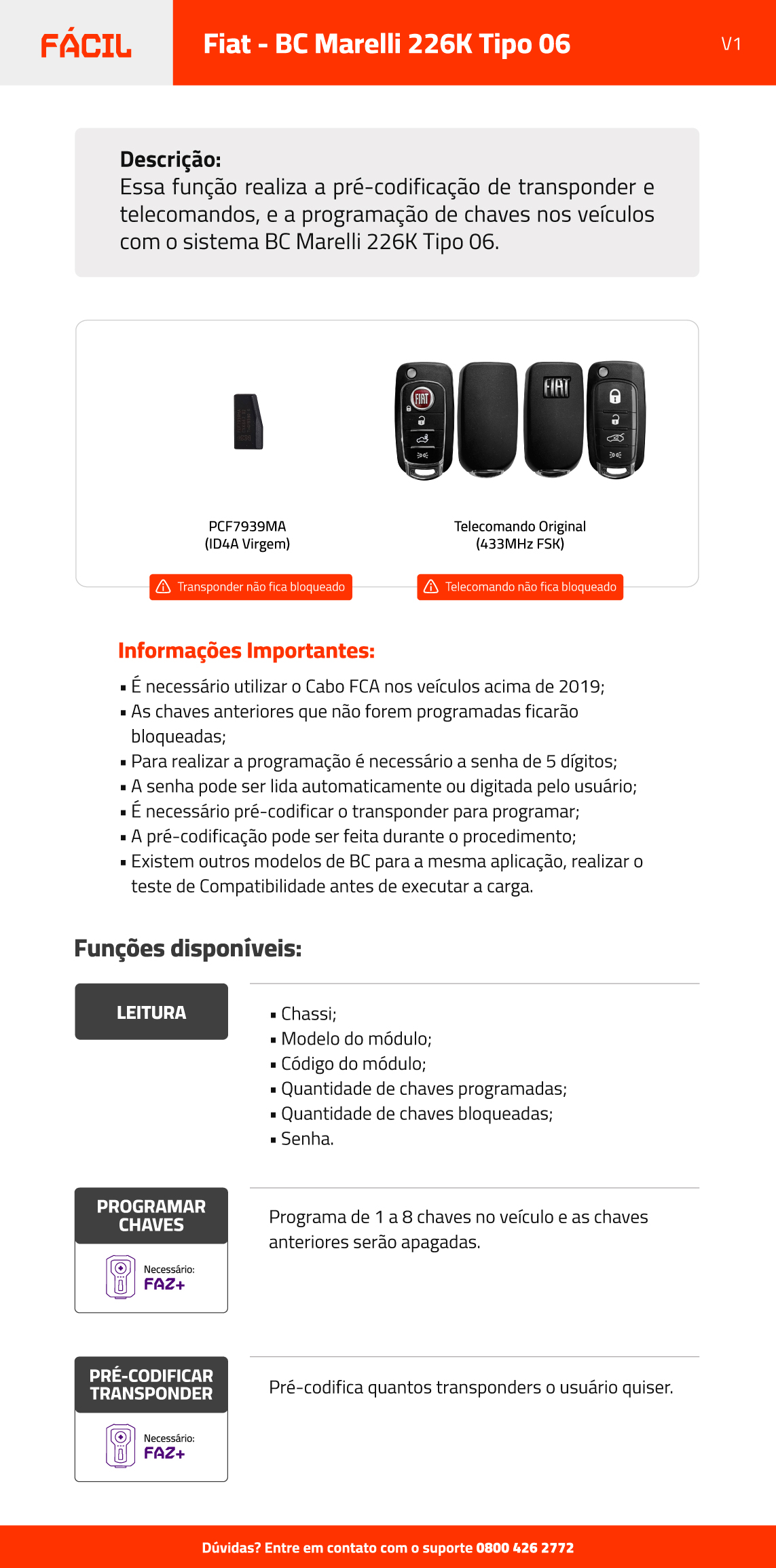 É necessário realizar a pré-codificação do transponder quando todas as chaves forem apagadas. Para realizar a pré-codificação, é necessário utilizar o Faz+.